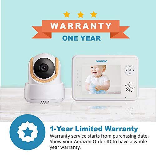【 Ensures a 100% secure and interference-free baby security camera 】The most secure baby monitors employ FHSS technology, the 1000 ft (open field) long-range wireless transmission, which brings your family member's privacy a secure and stable signal. Simply plug and play within seconds, no wifi required. 【 Unique power-saving VOX mode 】When the baby makes sounds, the screen will be immediately activated, helping you monitor 24 hrs with ease. With the 2-way talk and lullabies, speaking, listening, and comforting all come in one device, having interactions with babyies without difficulties. 【 Up to 4 cameras on 1 monitor 】One monitor can pair with 4 cameras, parents can select which camera to monitor or scan the camera one by one. Automatically selected channel for consistent image quality. Baby timer: set the feeding or sleeping times on the baby monitor. 【 Enhanced night vision watch your baby in the dark 】Automatic infrared night vision in a motorized pan/tilt camera. Excellent vision, complete mind release. High quality 3.5 inches TFT high-resolution LCD display with a guarantee of 20,000 hours usage time. 【 Best baby monitors with camera and audio for home nursery 】The motorized camera providing a 350° horizontal and 120° vertical rotation viewing range with a wall-mountable design, digital zoom function zoom in on the baby cot. 2-year warranty for free exchange and return. in case of any issue, just contact us and we’re happy to help you via amazon message, support email.