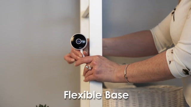 Wifi connection with mobile app, Connectors to app on app store and Google play Flexible base for multi-support options HD 1080p with LED infrared night vision Motion and sound detector, Temperature and humidity sensor 2-way talk and Zoom x2, Video recording available