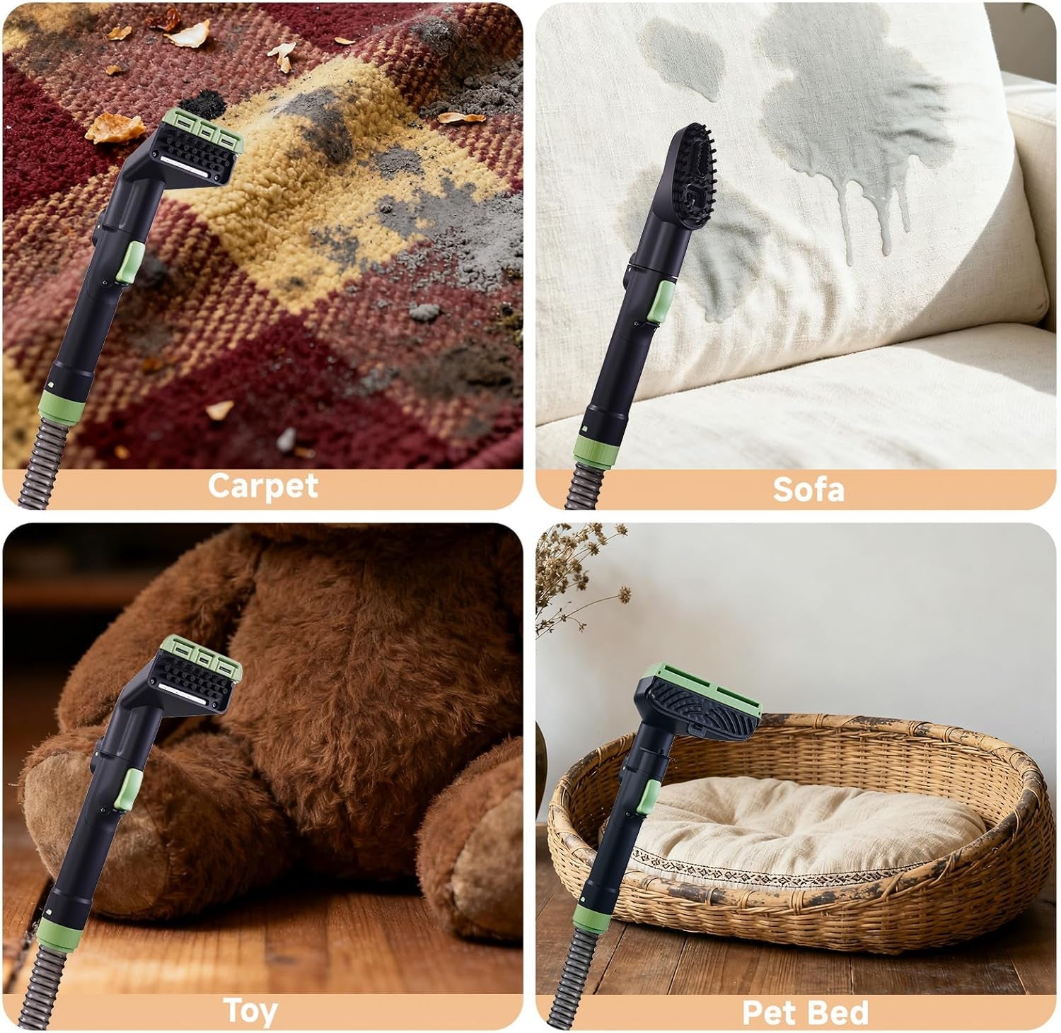 - Multi-Surface Toolkit for Every Stain: 4 tools in varied sizes can cover nearly all your cleaning needs. The crevice cleaning brush targets stains in narrow gaps, the small handheld tool works on cleaning carpets/mattresses, while the 2-in-1 large handheld tool speeds through large-area cleaning