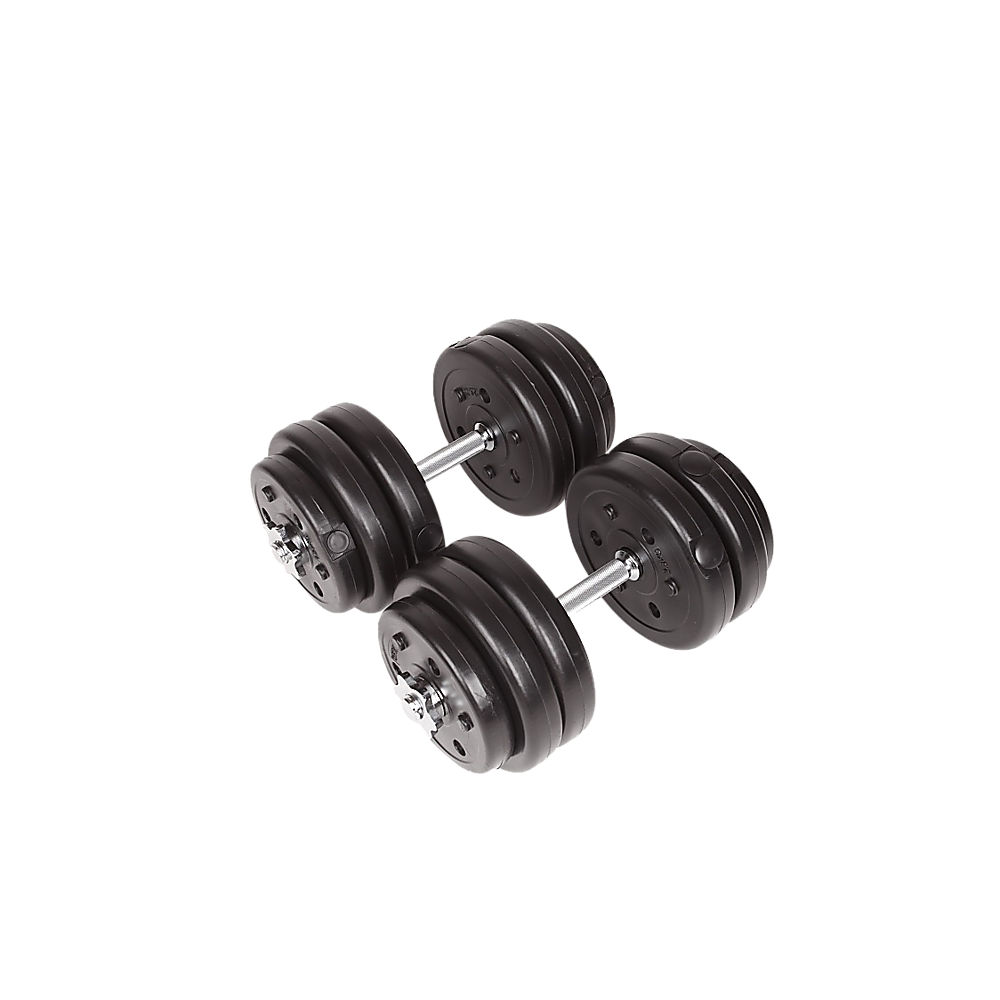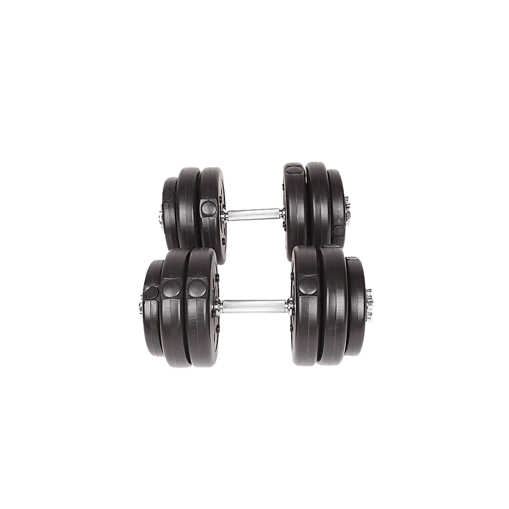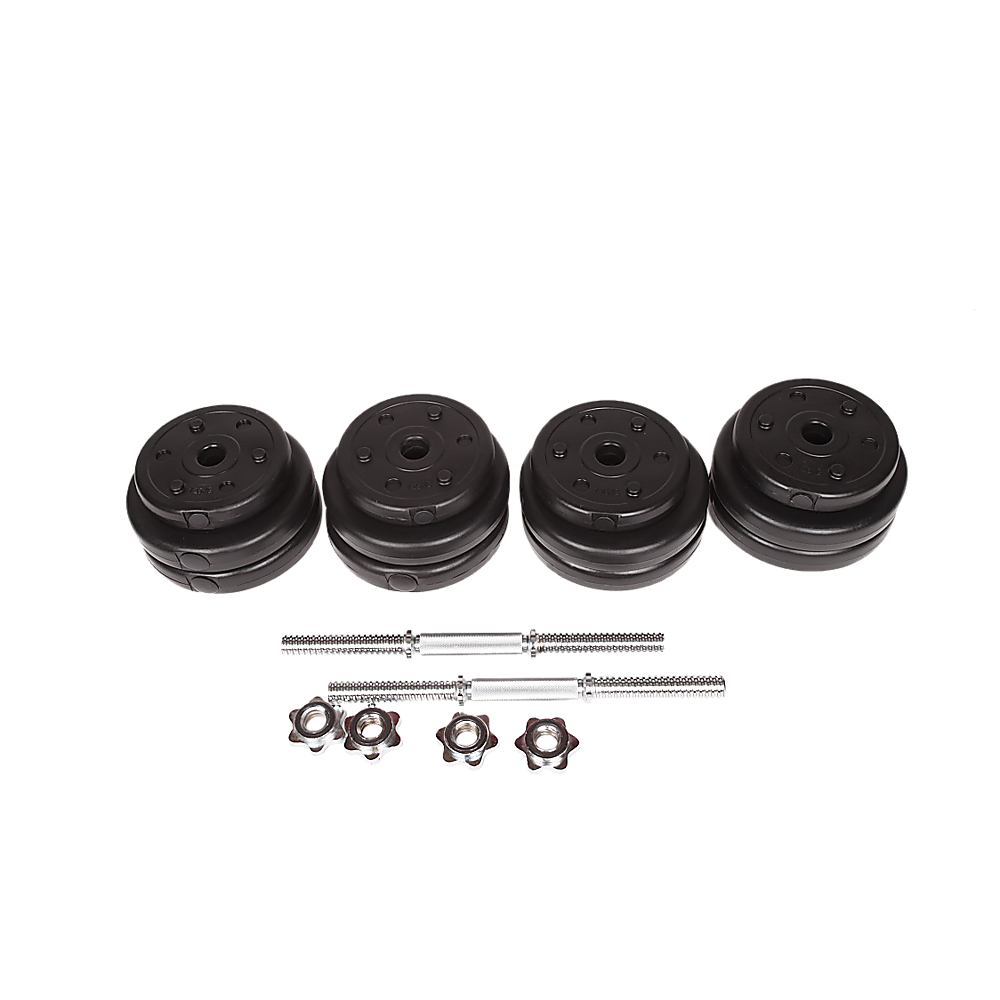 Made from a durable plastic outter with cement filling, these weights are easy to slip on and off in order to customise your workout. You'll receive 8 x 2.5kg weights and 4 x 1.25kg weights. You'll also receive 4 easy to use screw collars to ensure your weights are securely in place.