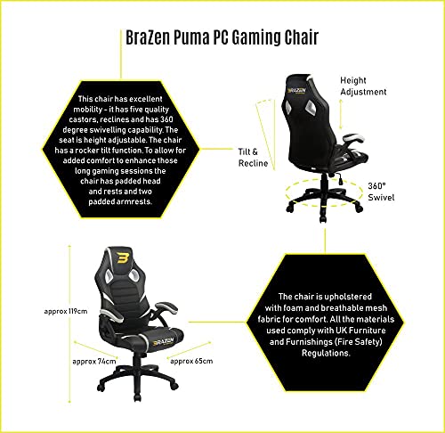 Make your gaming or work environment more enjoyable with this quality comfortable chair.PU Mesh and faux leather covering Padded fixed arms Tilt and height adjustment mechanism Class 3 gas lift Nylon Castors